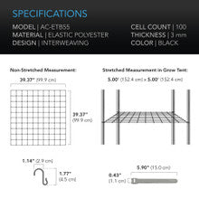 AC INFINITY GROW TENT TRELLIS NETTING, FLEXIBLE ELASTIC CORDS, 5X5