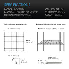 - Versatile steel hooks securely clip the height-adjustable trellis net onto your grow tent's frame.