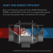 The inline speed controller enables you to set the duct fan’s speed to optimal noise and airflow levels for various environments. Unlike common AC-powered duct fans that suppresses voltage to control fan speeds, this duct fan features an EC-motor that is precisely controlled using PWM (Pulse Width Modulation). This technology enables the fan's motor to be able to run smoothly at extremely low RPM speeds without generating motor noises and heat as seen on variable voltage controllers. Eight speed options are available with power switch, and backup memory. This S4 model can be connected to the smart controller of the CLOUDLINE T4 to share the same programming and power source.