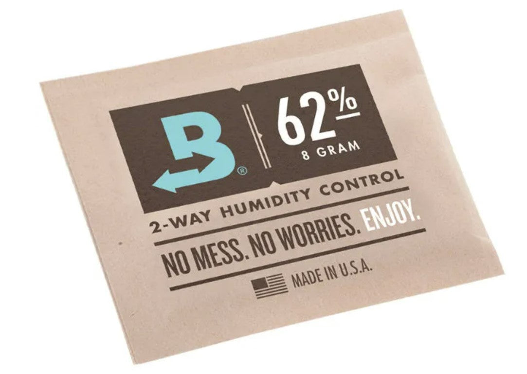 2-way humidity control pak maintains a 62% level of relative humidity (RH) inside of packages and containers. The 8 gram Boveda® is the great for smaller containers, boxes, humidors, jars.