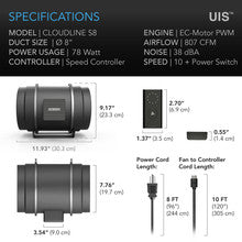 CLOUDLINE PRO S8, QUIET INLINE DUCT FAN SYSTEM WITH SPEED CONTROLLER, 8-INCH
