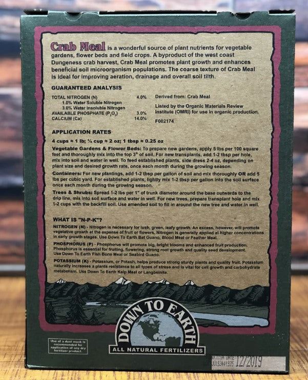 A byproduct of the West Coast crab harvest, Down To Earth’s Crab Meal 4-3-0 is a wonderful source of plant nutrients for vegetable gardens, flower beds and field crops. The coarse texture of DTE Crab Meal is ideal for improving aeration, drainage and overall soil tilth.