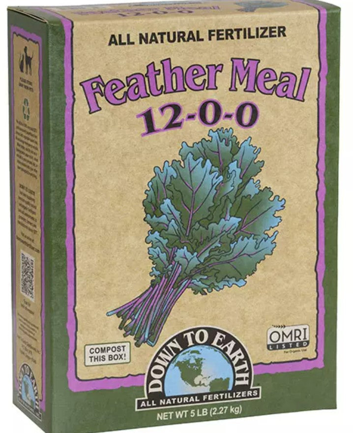Down To Earth™ Feather Meal 12-0-0 is derived from hydrolyzed, dried and ground poultry feathers. An all-natural source of slow-release nitrogen, it is perfect for corn, tomatoes and fall harvested vegetables. DTE™ Feather Meal should be incorporated into soils before planting or side dressed throughout the growing season to provide a steady release of nitrogen necessary for optimum plant growth.