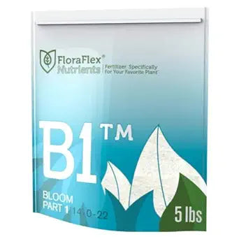 FloraFlex has engineered the highest quality, cleanest, & most pH Stable nutrients on the market. We are proud to bring you the first FloraFlex nutrient line: an easy to use two part powder formula for both the vegetative & bloom stages. B1 & B2 combine as a two-part water-soluble formula, providing all of The essential nutrients needed for vigorous plant growth throughout the entire flowering stage. Use 1-3 teaspoon 5 gallon of water (1-2gper gallon). add B1 & then B2 to your water source throughout the entire flowering stage. For optimal results, make sure the EC of your water is 0.2-0.3 the EC of your water can rangeup to, but should not exceed, 0.7 at lower dosages, B1 & B2 can be used as a base along with other additives.