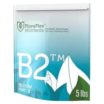 FloraFlex has engineered the highest quality, cleanest, and most pH stable nutrients on the market. We are proud to bring you the first FloraFlex Nutrient line: an easy to use two part powder formula for both the Vegetative and Bloom stages. B1 and B2 combine as a two-part water-soluble formula, providing all of the essential nutrients needed for vigorous plant growth throughout the entire flowering stage. Use 1-3 teaspoons per 5 gallons of water (1-2 grams per gallon). Add B1 and then B2 to your water source throughout the entire flowering stage. For optimal results, make sure the EC of your water is 0.2-0.3. The EC of your water can range up to, but should not exceed, 0.7. At lower dosages, B1 and B2 can be used as a base along with other additives.