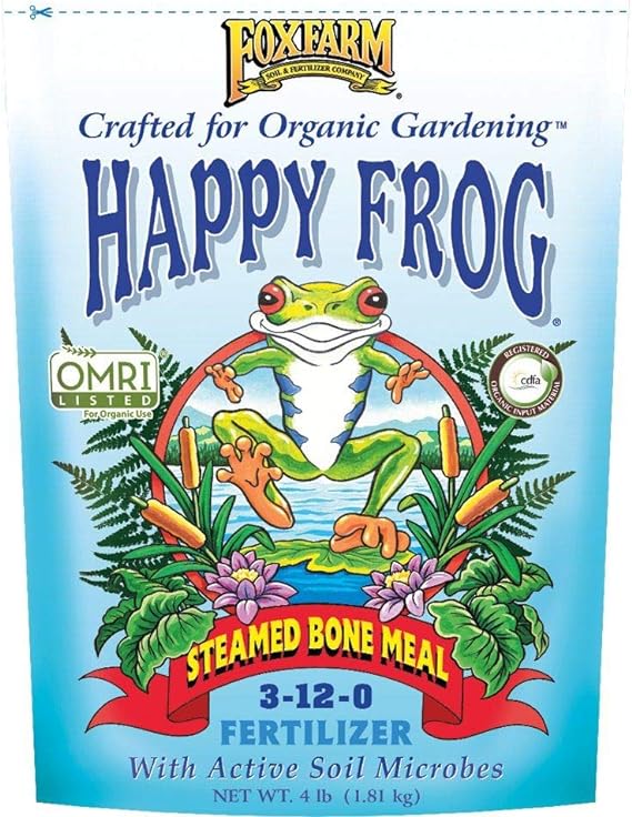 Bone meal is a wonderful food for bulbs and flowers. FoxFarm's Happy Frog Steamed Bone Meal is fine-screened and designed to provide phosphorus necessary for all stages of plant growth and flowering. Bone meal also contains calcium, which helps support strong cellular development in plants. Mycorrhizal fungi are included to help increase root efficiency, which may enhance nutrient uptake and water absorption. OMRI Listed Happy Frog Fertilizers are Crafted For Organic Gardening