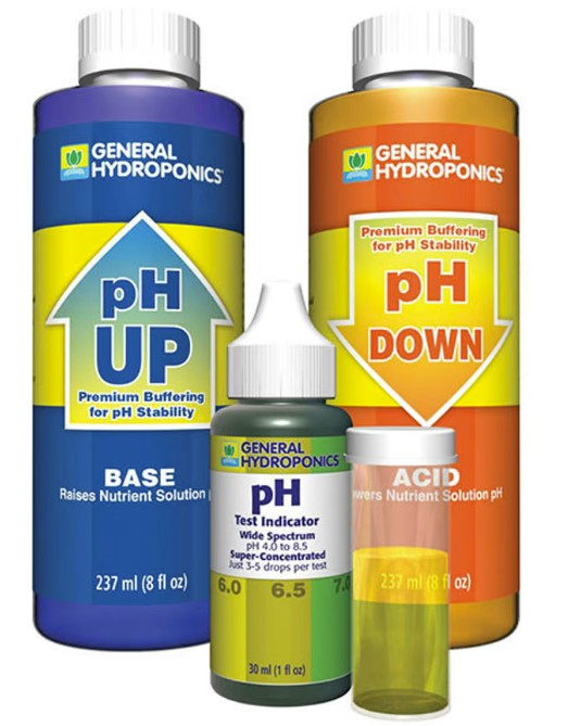 General Hydroponics pH Test Kits make pH testing easy. Fill a test-tube halfway with nutrient, add a few drops of pH Test Indicator (Use 3 drops per 5mL of solution), and observe the coloration of the liquid in the test vial. Many experienced growers prefer our pH Test Kit to expensive electronic meters because it is reliable and easy to use.
