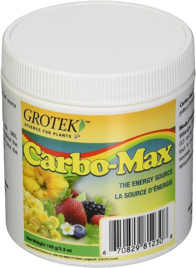During photosynthesis plants naturally produce their own energy source in the form of carbohydrates. Carbohydrates are used to drive many important functions within a plant. These functions can make the production of energy a limiting factor within plants. Carbo-Max & trade; is a source of simple sugars that are water soluble and can be accessed by plants to use in their development. Directions for Use: Mix 1g of Carbo-Max into 4L (1g/1 gal) of water (soil or soilless). Use throughout the blooming cycle. Reapply each time the water is changed in the reservoir