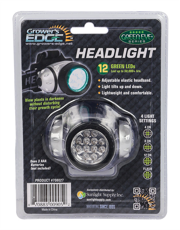 Ideal for viewing plants at night without disturbing their growth cycle. The lightweight, compact Green Eye® Headlight easily adjusts with its elastic band and tilting light mount. Ultra bright LED bulbs with 100,000+ hrs of burn time. Customize your lamp settings with one click of the button. The settings are 4 lamps, 8 lamps, all lamps and flashing. Water resistant. Allows hands-free tasking. Uses three AAA batteries (not included).