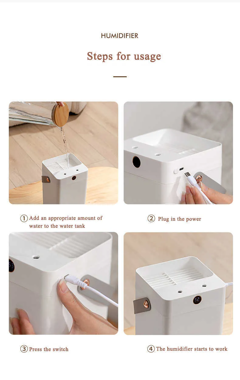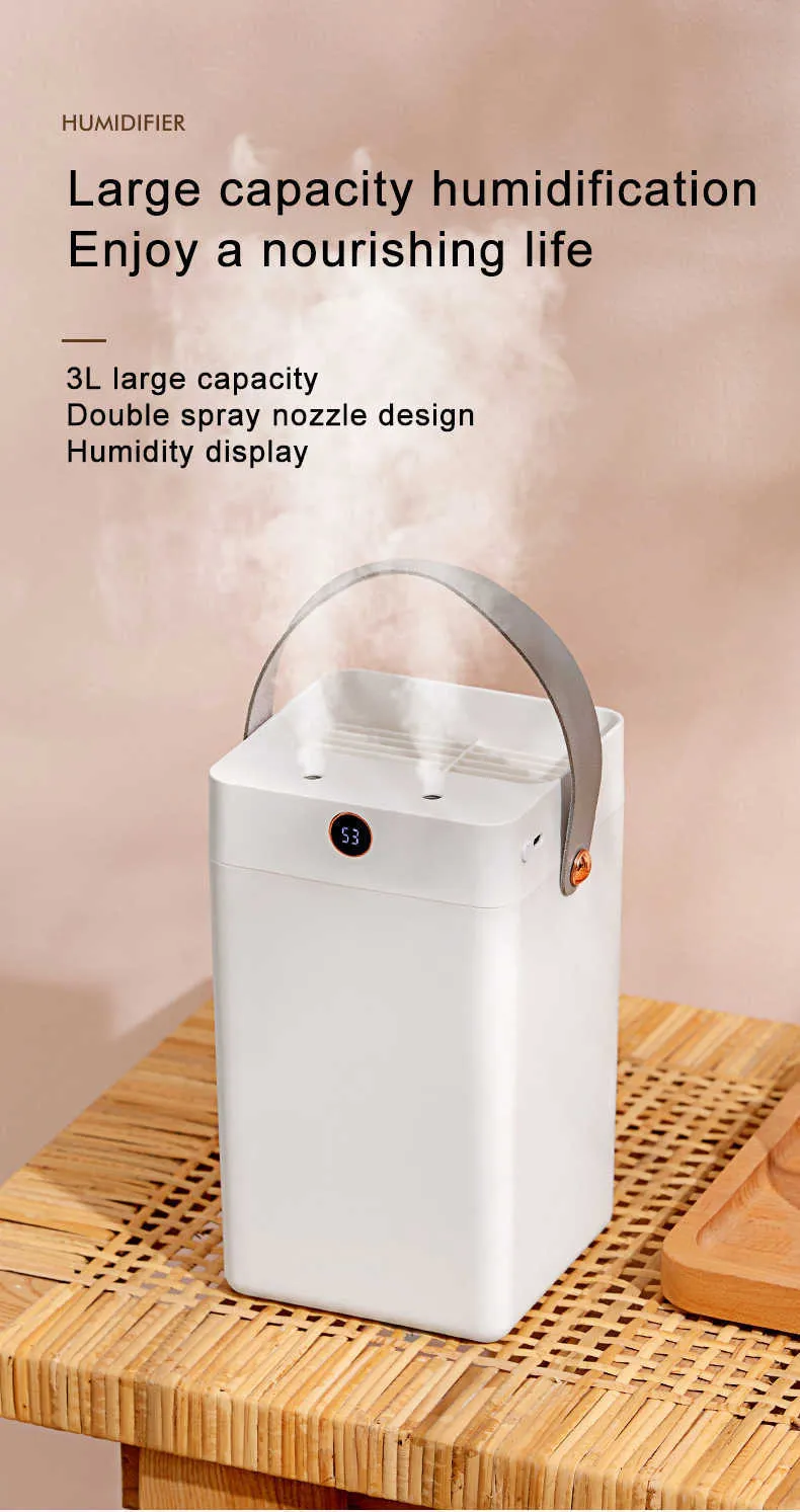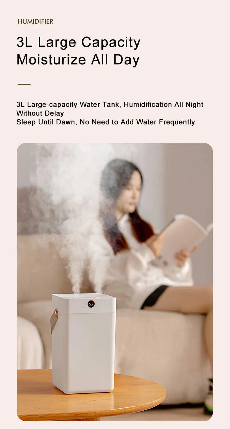 Humidifiers 3L Air Humidifier High-capacity Double Spray Aroma Diffuser With Humidity Display Cool Mist For Home Plants