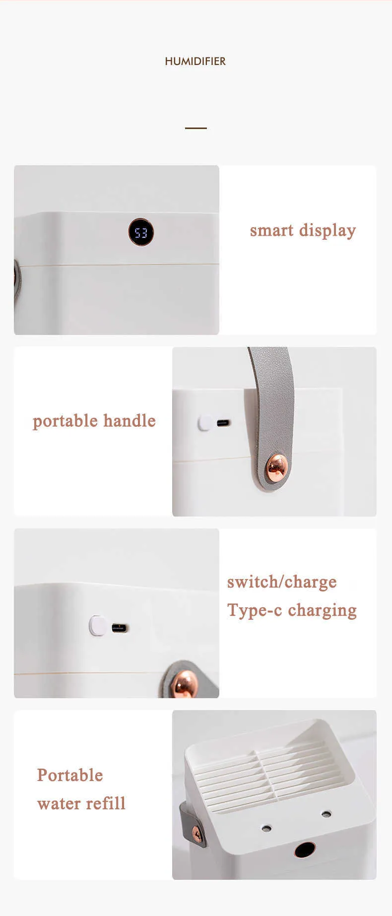 Portable Carrying Handle: Easy to Move, Unlimited Humidification, Humidification Anytime, Anywhere