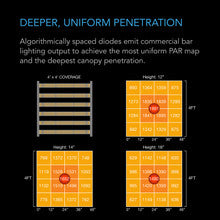- Bar-style fixture with algorithmically spaced diodes optimized for even coverage, deep canopy penetration, and hotspot reduction.
