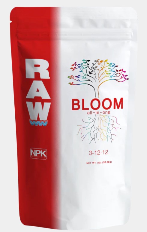 RAW BLOOM is a tested blend of all 12 RAW Soluble plant nutrients, essential elements and supplements. This blend has been proven to be an optimal all in one base “Bloom” horticultural fertilizer. RAW BLOOM is used through out the entire flowering stage. Derived from: Plant protein hydrolysate, mono potassium phosphate, potassium sulfate, cane molasses, sodium borate, iron DTPA, magnesium sulfate, manganese sulfate and natural volcanic ash. Also contains non-plant food ingredients: Humic acids derived from leonardite and peat, kelp (ascophyllum nodosum), silicon dioxide derived from diatomite and yucca extract.