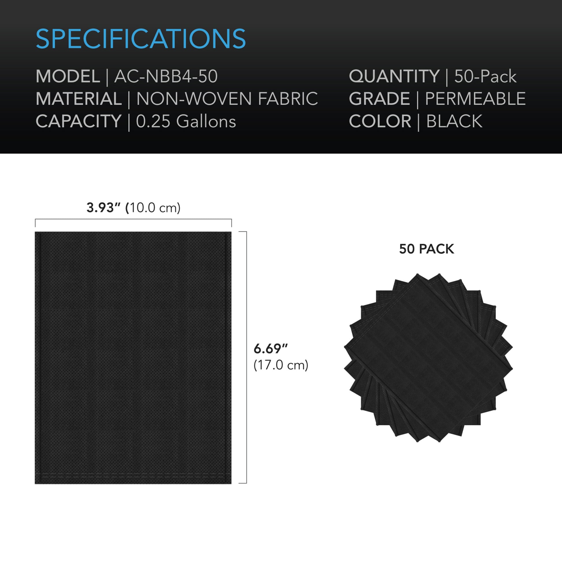 - Capacity: 0.25 Gallons | Dimensions: 6.67 x 3.92 in. | Material: Non-Woven Fabric | Quantity: 50-Pack