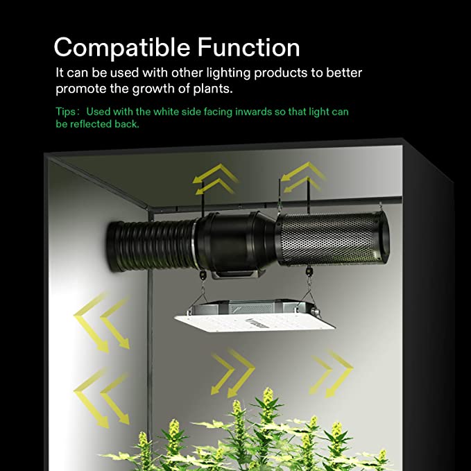An alternative to mylar for growing areas. Heavy-duty plastic that is white for reflection on one side, black on the other. Excellent when used as a floor covering - helps protect floor while reflecting light back up to the undersides of the plant leaves.