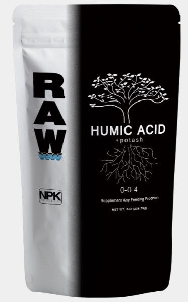 RAW Humic Acid contains 59% Humic Acids derived from Leonardite which is the most concentrated, water Soluble humic acid product on the market today. In nature, humic acid has a buffering effect on the pH of soils. It can raise the pH of acid soils and lower the pH of alkaline soils. RAW Humic Acid is also great for hydroponics applications, especially when added to RO filtered water. RAW Humic acid is a natural chelator and is a beneficial supplement to all feeding schedules. Works in conjunction with all nutrient and feeding programs.