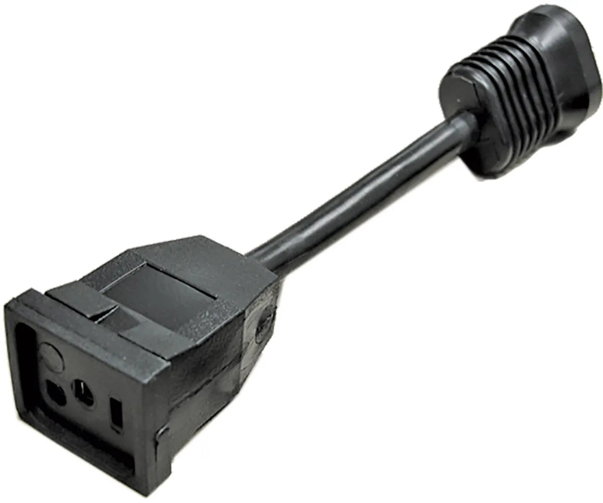 Adapter that connects Hydrofarm ballast with a "Brand S" reflector unit. Solves the problem of not being able to use Hydrofarm ballasts and "Brand S" reflectors in combination due to incompatible plugs.
