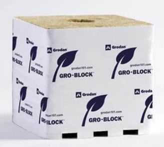 6″ Gro Blocks Measure 6″ x 6″ x 6″ – perfect for larger plants. These 6″ Gro Blocks can be used as an intermediary or final container for planting. Individually wrapped cubes hold the rockwool’s shape and prevent algae growth. Grodan A-OK Staters and Macroplugs fit snugly into the pre-formed hole on the top of each 6″ Gro Block