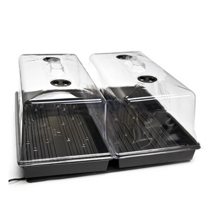 Root Radiance seedling heat mat warms root area 10 to 20 degrees over ambient temperature, improving the germination process and overall success of seedlings and cuttings. Durable, portable and water resistant, root radiance is ideal for greenhouses, nurseries, and indoor gardens. Includes a 6 foot 120V power cord. Fits (2) 10"x20" propagation trays.