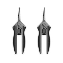 - A curved micro-tip shear designed for fine trimming in tight spaces and shaping plants to improve growth.