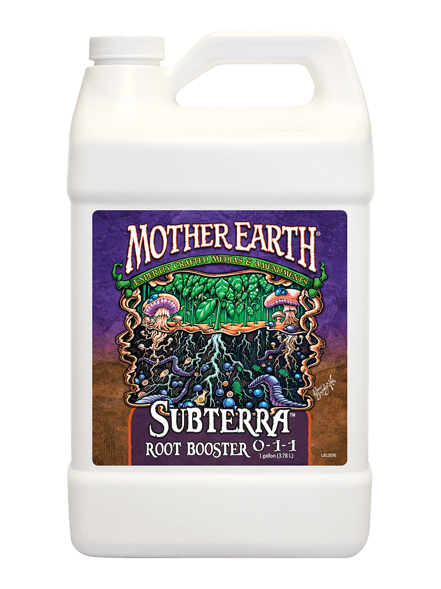 Mother Earth® Subterra Root Booster 0-1-1 is a liquid plant supplement for transplants and starts. Mother Earth Subterra Root Booster 0-1-1 is crafted to get them there. With a unique blend of kelp, brewer’s yeast, alfalfa meal and more, seedlings, cuttings and vegetative plants will have the foundation they need to flourish.